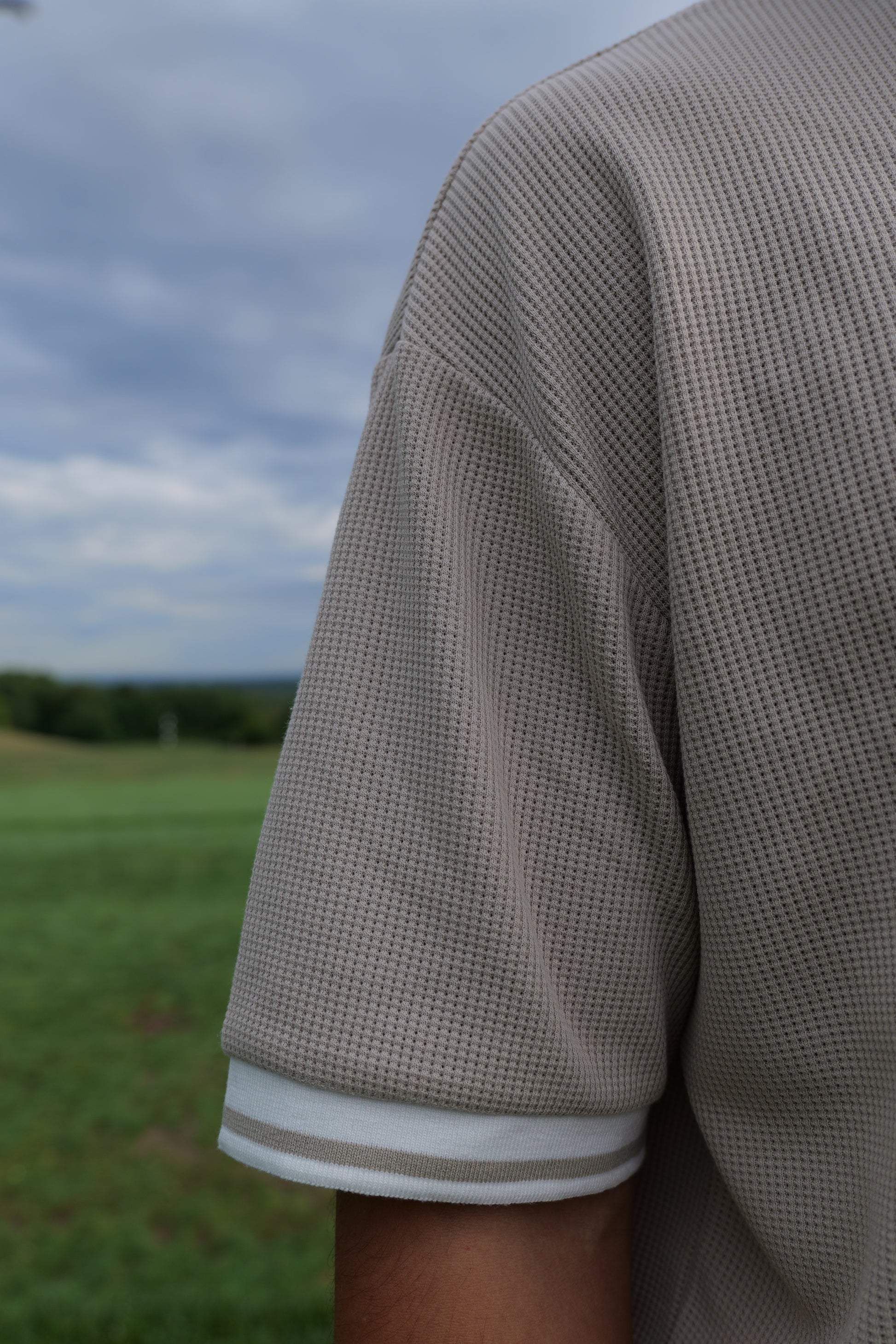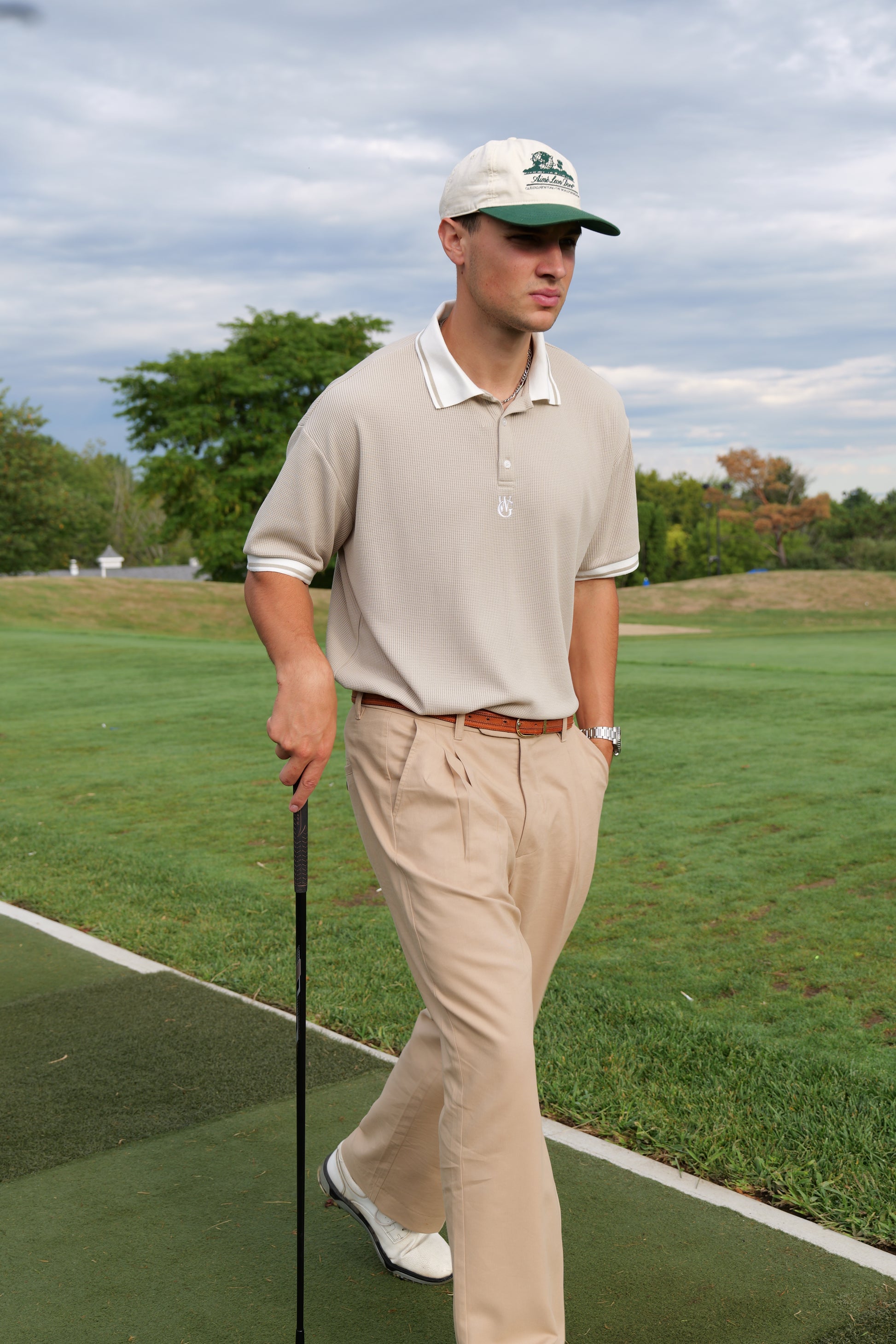 The Modern Vintage Polo blends heritage style with modern comfort. Featuring a textured waffle knit body, this polo offers a refined look with a breathable and lightweight feel.